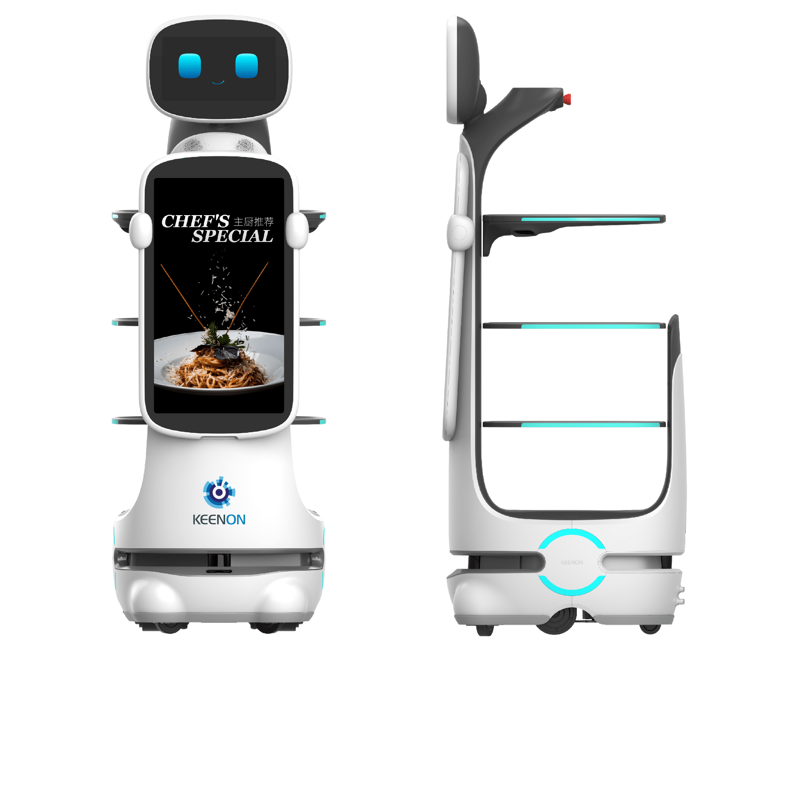 DINERBOT T10, restoran ve benzeri kalabalık ortamlarda etkin bir şekilde hizmet sunmak üzere tasarlanmış bir robotik çözümdür. 40 kg’a kadar yük taşıma kapasitesine sahip olan bu robot, 59 cm genişliğindeki alanlardan geçerek yoğun saatlerde bile sorunsuz bir şekilde hareket edebilir. 23.8 inçlik ekranı ve etkileşimli butonları ile müşteri etkileşimini artırırken, 360° tanıma sistemi ve çok sayıda sensör ile güvenli navigasyon sağlar. Kullanıcıların kolayca alım yapabilmesi için açık erişim tepsisi, görsel algılama ve sesli yönlendirme özellikleri ile donatılmıştır. Ayrıca, patentli algoritmaları sayesinde görevleri verimli bir şekilde yerine getirmek için rota planlamasını optimize eder.